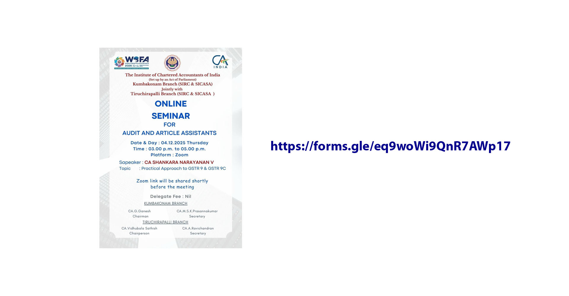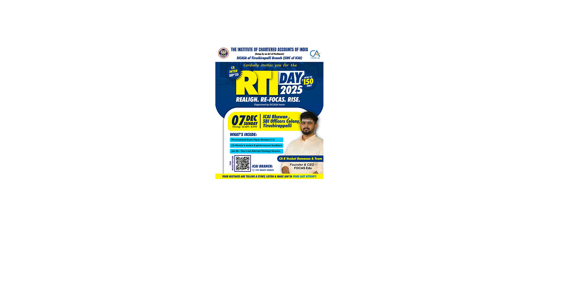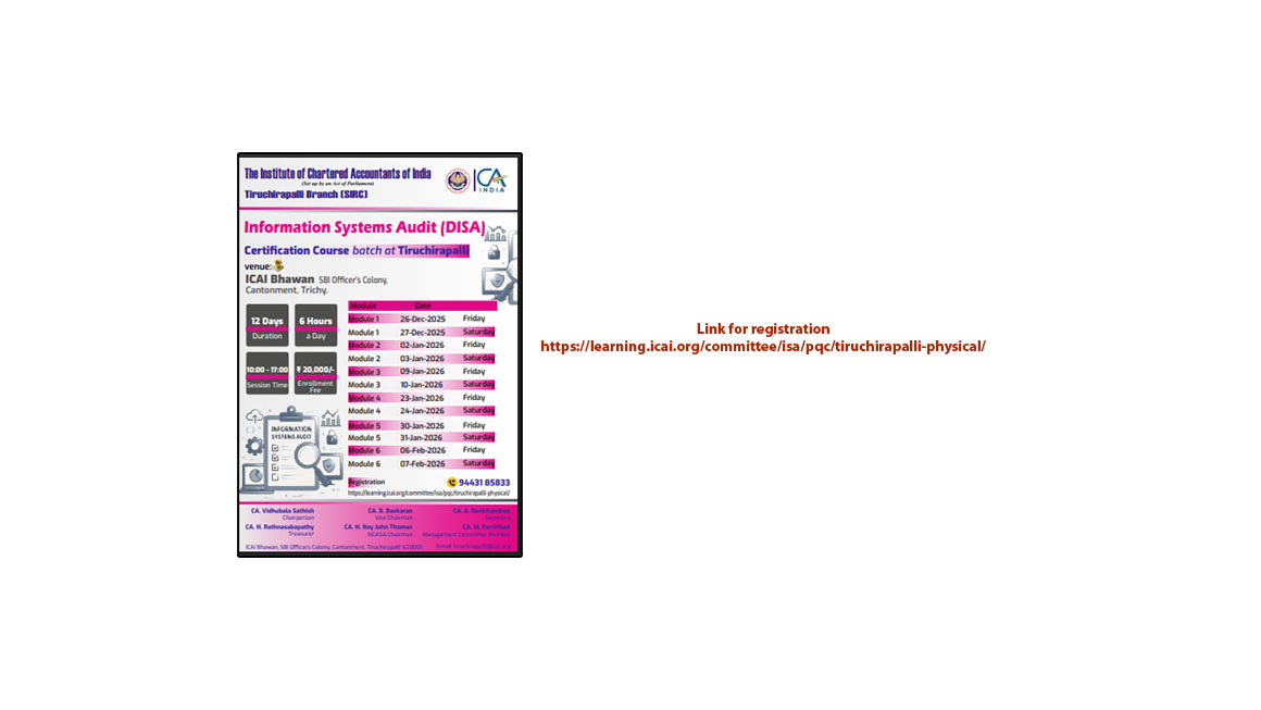 | ADVICITSS course will be launched (13-11-2025),at 5.30pm | --- | 2025-11-20 | First come first serve basis by ICAI, TRICHY |